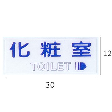 NO.1330 化妝室 右箭頭 12x30cm 彩色壓克力標示牌/指標/標語 附背膠可貼