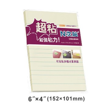 StickN N次貼 6x4 超粘可再貼橫線便條紙/便利貼 黃 150x101mm 90張入 NO.62752