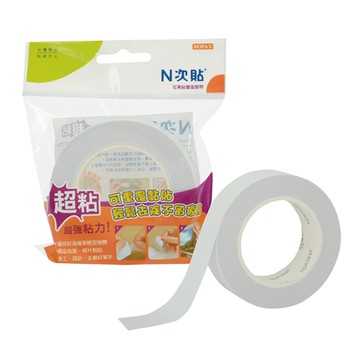【N 次貼】64009 超黏可再貼雙面膠帶 25mmx12M 1捲/袋 - 透明雙面膠帶-64009