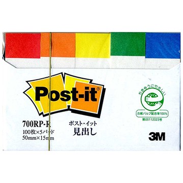 3M 思高牌 Post-it 利貼 700RP-R 可再貼 環保標籤紙 再生紙 5色 15×50mm