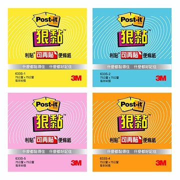 3M 思高牌 Post-it 利貼 狠黏 NO.633S 可再貼便條紙 90張 75x75mm