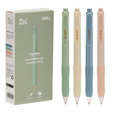 得力Deli NU SIGN按壓中性筆 ENS576-BK 柔色 混桿黑芯 0.5mm X 12支入盒裝