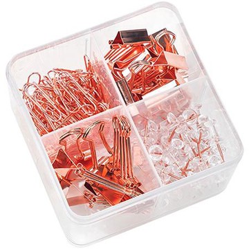 得力Deli玫瑰金4格文具組/78551/長尾夾+迴紋針+美式圖釘
