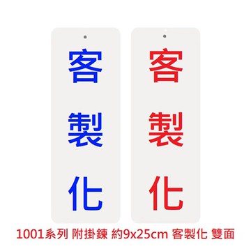 【客製商品】約9x25cm 客製直式雙面指標白底 字可選紅藍字 打孔附掛鍊 聯合1000系列 (NOD)