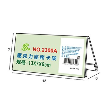 文具通 NO.2300A 壓克力座席卡架/三角桌牌13x7x6cm