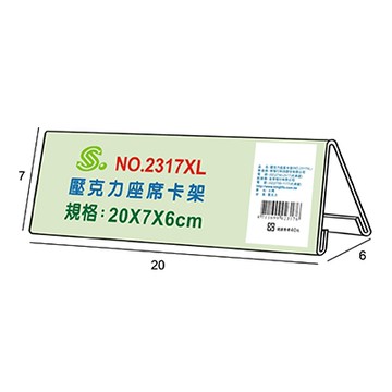 文具通 NO.2317XL 壓克力座席卡架/三角桌牌 20x7x6cm