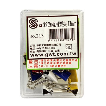 文具通 彩色長尾夾 13mm 14支入盒裝 NO.213
