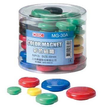 COX 三燕 30mm 筒裝圓形彩色磁鐵/吸石(混色) MG-30A 50個入筒裝