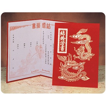 K金證書 龍鳳 絨面 結婚證書 201B-1