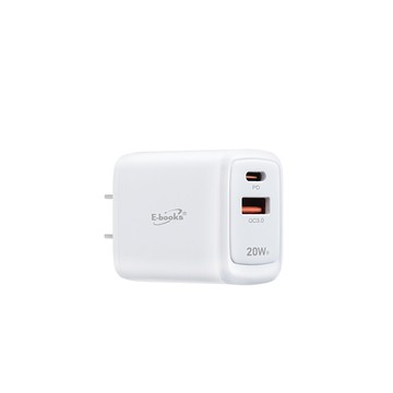 E-books B60 高效能 20W PD + QC3.0 雙孔快速充電器 E-PCB233 白色 1個