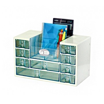 桌面抽屜式壓克力收納盒(大號10格+筆筒)