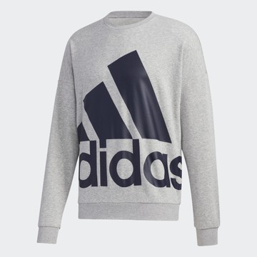 Adidas FAVORITES 男裝 長袖 大學T 休閒 寬鬆 無刷毛 大Logo 灰【運動世界】GK0620