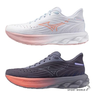 Mizuno 美津濃 慢跑鞋 女鞋 WAVE SKYRISE 6 白粉/灰橘【運動世界】J1GD250974/J1GD250971