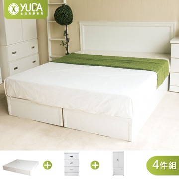mayu+日本設計純白華夫格雙人全套床組-Z61