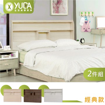 日式鄉村風_經典款二件組 5尺雙人 10CM薄型床頭(附床頭插座/無門)床架組/房間組【YUDA】