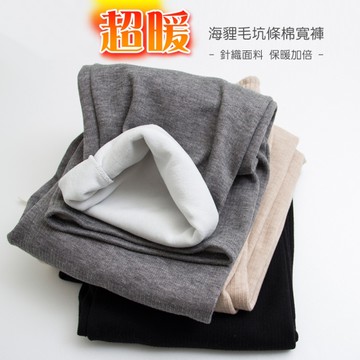超暖內刷毛海貍毛坑條針織寬褲-3色 191363