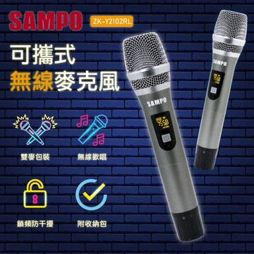 SAMPO聲寶專業級U頻可攜式無線麥克風(1對2) ZK-Y2102RL