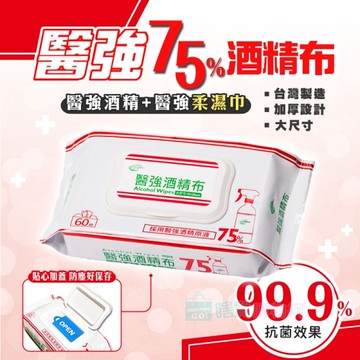 【醫強】75%酒精布 (加蓋加厚60抽) 濕紙巾 濕巾 台灣製 酒精原液 防疫 消毒 清潔