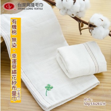 有機棉.繡幸運草紗布純棉童巾/小毛巾 (單條童巾組)【台灣興隆毛巾專賣】雙層織造/無染系列