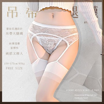 性感一體式吊帶大腿襪︱性感蕾絲吊帶連大腿襪7365-白〔糜釀leurre〕