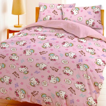 戀家小舖 台灣製 床包 雙人床包 兩用被套 床單 Hello Kitty 戀愛達人 床包兩用被套組 含枕套