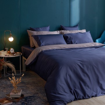 Cozy inn 簡單純色-灰藍 雙人四件組 200織精梳棉薄被套床包組