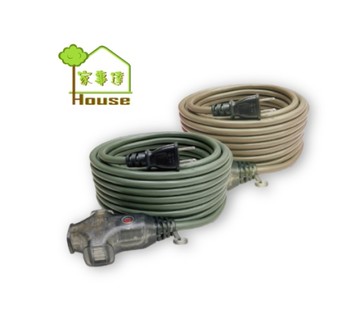 DIBOTE迪伯特 2P三插座附燈過載動力軟線 IH-268A 15m 軍綠色 1條