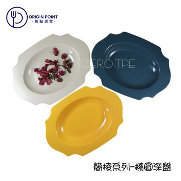 ZERO原點居家 簡棱系列-橢圓深盤 12吋 菜盤 魚盤 餐盤 造型盤 創意陶瓷盤 純色陶瓷盤