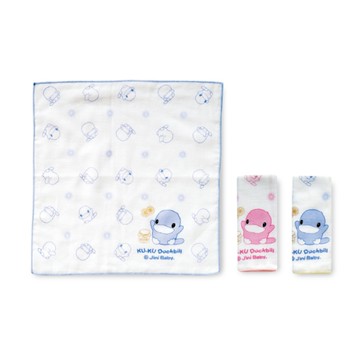 KUKU 酷咕鴨 狐狸熊滿底緹花紗布手帕3入(隨機出貨不挑色)