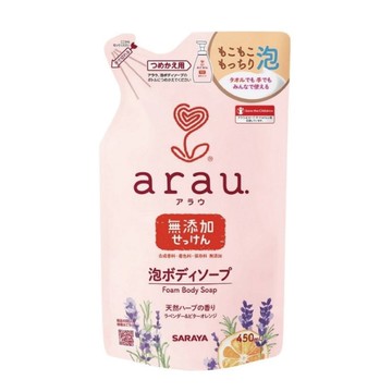 日本 SARAYA - arau.無添加 純質粹溫和沐浴慕斯補充包-450ml
