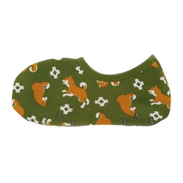 日本 Poka 保暖襪-綠色柴犬 裏起毛 襪套 船型襪 室內拖鞋 防滑鞋底 襪子 短襪 拖鞋【南風百貨】