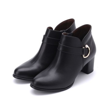 LUZZI C釦鑽拉鍊跟靴 黑 女鞋