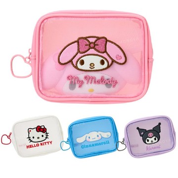 小禮堂 Sanrio 三麗鷗 網狀刺繡收納包附扣環 (大臉 炎夏企劃) Kitty 大耳狗 酷洛米
