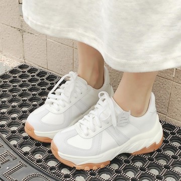 amai 時尚抽鬚異材質拼色厚底老爹鞋 小白鞋 運動鞋 休閒鞋 厚底鞋 懶人鞋 休閒 大尺碼 白色 GS13-8WT