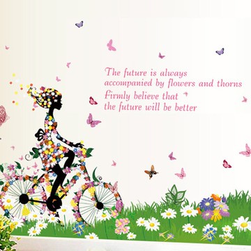 壁貼 自行車女孩 創意壁貼 無痕壁貼 壁紙 牆貼