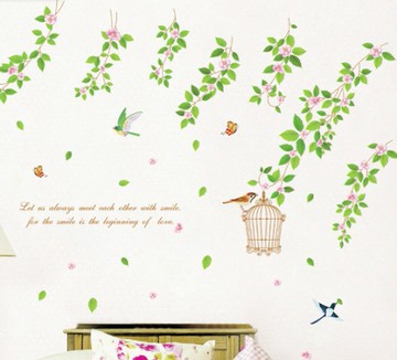 壁貼 鳥籠綠葉藤蔓 創意壁貼 無痕壁貼 壁紙 牆貼