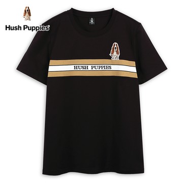 Hush Puppies T恤 男裝異材質剪接經典刺繡狗T恤