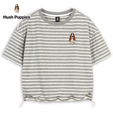 Hush Puppies 上衣 女裝異材質拼接條紋刺繡狗上衣