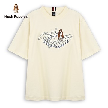 Hush Puppies T恤 男裝簡約造型立體品牌英文刺繡狗T恤