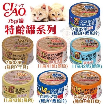 【24罐入】日本CIAO台灣公司貨 CIAO 特齡罐系列專為老齡貓特選罐頭-75g『寵喵樂旗艦店』