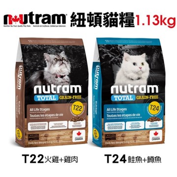 【紐頓 Nutram】無穀全能系列 T22火雞/T24鮭魚 全齡貓 2KG