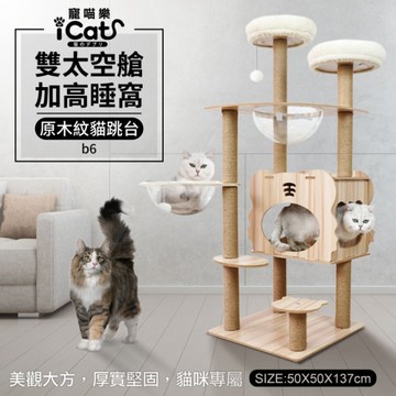 iCat 寵喵樂-雙太空艙加高睡窩原木紋貓跳台 (b6)