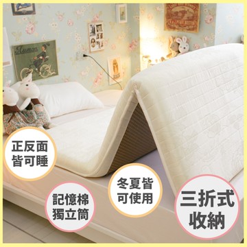 棉床本舖 單人床墊 3尺X6.2尺 日系記憶棉獨立筒彈簧冬夏兩用收納床墊【外島無法配送】(貨運無上樓服務)