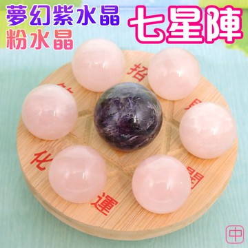 【吉祥開運坊】【粉水晶七星陣小型(附粉晶底盤) 人緣 桃花 姻緣 粉晶七星陣】淨化 擇日