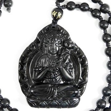 冰晶黑曜石 普賢菩薩本命佛項鍊 長62cm 黑色 1條