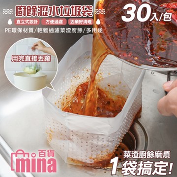[滿額免運] 廚餘瀝水垃圾袋30入 過濾袋 廚餘袋 殘渣瀝水袋 水槽瀝水袋(mina百貨)【F0462】