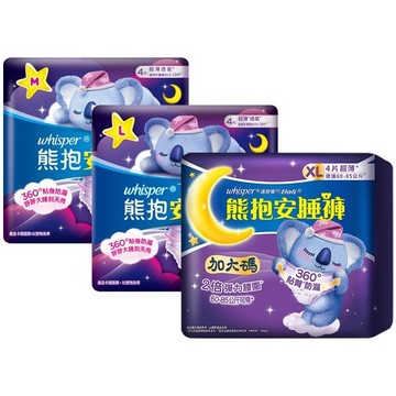 【whisper 好自在】熊抱安睡褲(XL)4片 (新舊包裝隨機出貨)