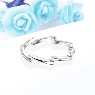 I.Dear飾品-正白K-中意你-曲線晶鑽造型情侶可調節開口戒指GA25