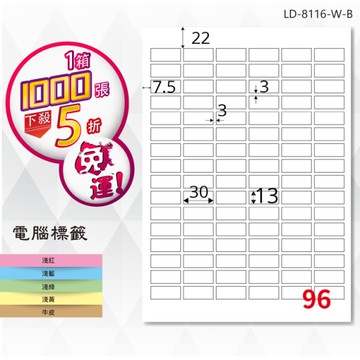 龍德三用列印電腦標籤/LD-859-W-A/白色/96格/105張/盒