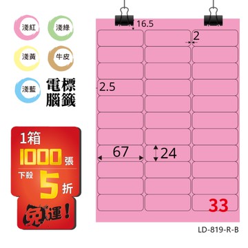 龍德三用列印電腦標籤/LD-806-R-C/粉紅/65格/20張/包